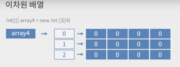 // array4[1]는 또 다른 1차원 배열을 가리킬 수 있는 참조형 변수이기 때문에 값을 담을 수는 없다.