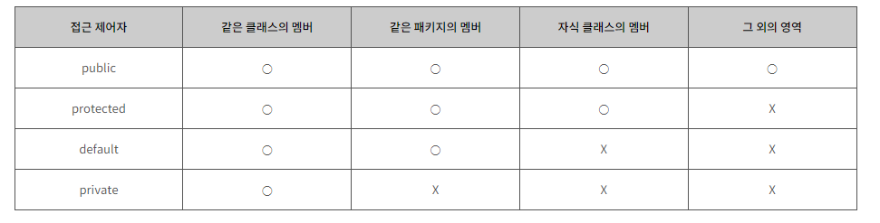 아래의 정리된 표를 보면 되며 접근자는 이정도만 알면 된다고 한다.