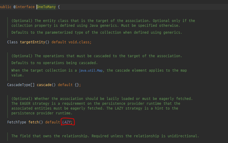 저 LAZY 라는 애 떄문인데 저 LAZY는 Question 클래스에 OneToMany 라는 것을 까보면