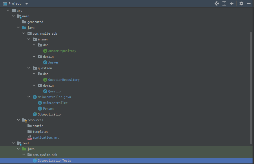dao 라는 패키지도 있어야하고 그 패키지 안에 내용을 question 과 같지만 answer로 해서 만들어야한다.