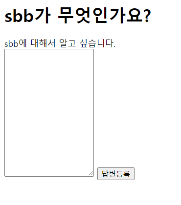 우선 위의 코드를 통해서 질문 상세 페이지에 답변을 등록할 수 있는 인풋창을 만든다.