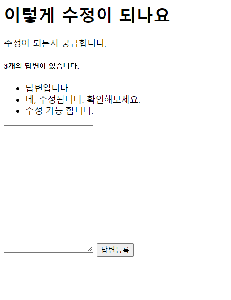 답변 자체는 question 객체의 answerlist를 순회하여 li 엘리먼트로 표시하는거라고 생각하면 된다.